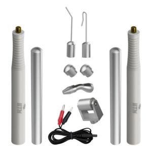 Kit completo de acessórios para o equipamento Stim Care, incluindo ponteiras, canetas e eletrodos desenvolvidos para potencializar resultados em tratamentos faciais e corporais.