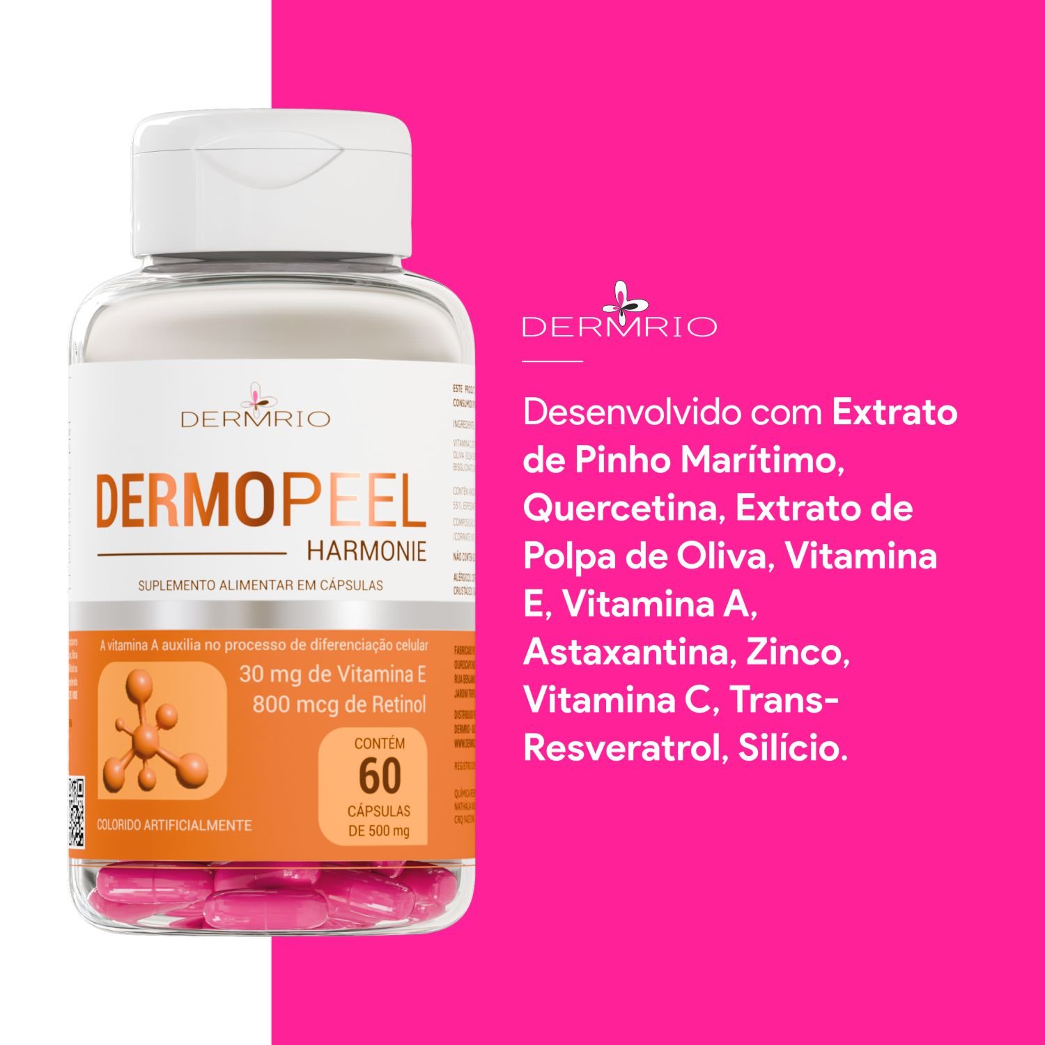 O DermoPeel foi desenvolvido para auxiliar no tratamento e prevenção do melasma e outras hiperpigmentações, atuando na uniformização do tom da pele e na melhora da textura e firmeza. Sua composição inclui ativos como Extrato de Pinho Marítimo, Quercetina, Vitamina C, Vitamina E e Retinol, que oferecem ação antioxidante, clareadora e regeneradora, ajudando também na redução de rugas e linhas de expressão.
