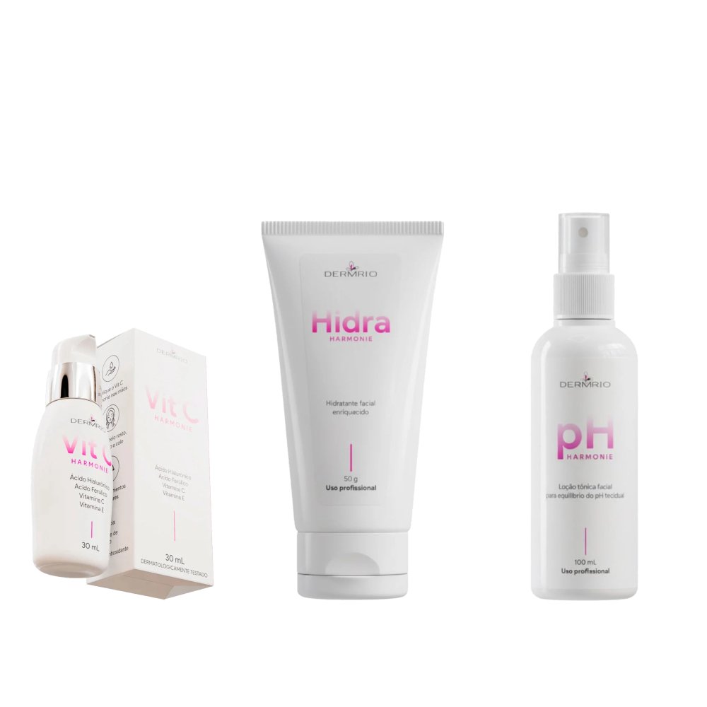 Kit promocional exclusivo contendo: Vitamina C 20% 30mL, Hidra Harmonie, pH Harmonie.