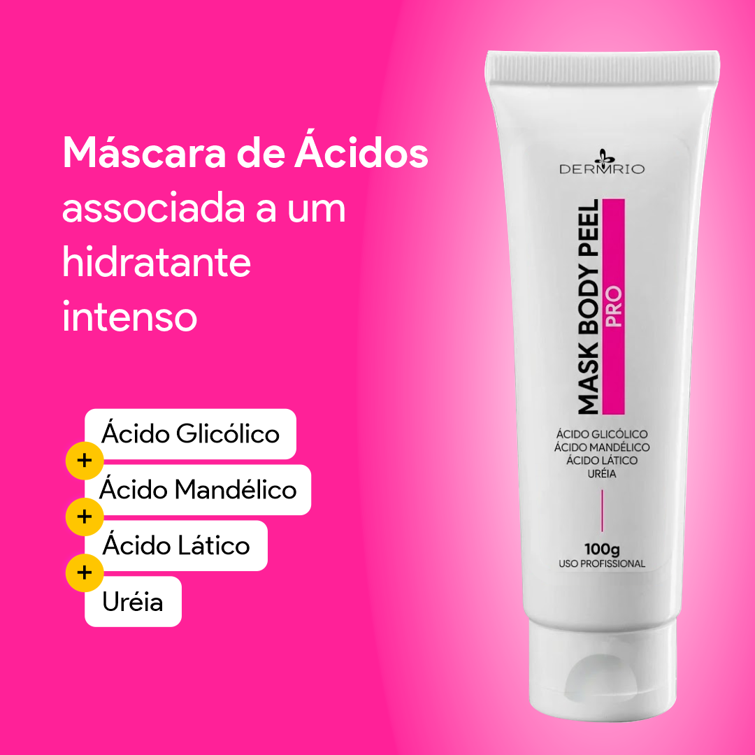 Renove sua pele com o MaskBodyPeel. Uma potente máscara facial e corporal com Ácidos Glicólico, Mandélico, Lático e Ureia, que uniformiza a textura e garante hidratação profunda.