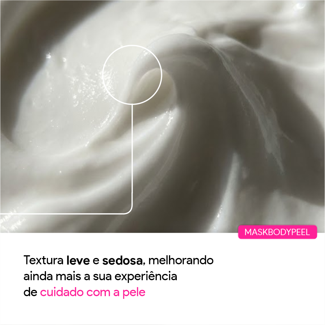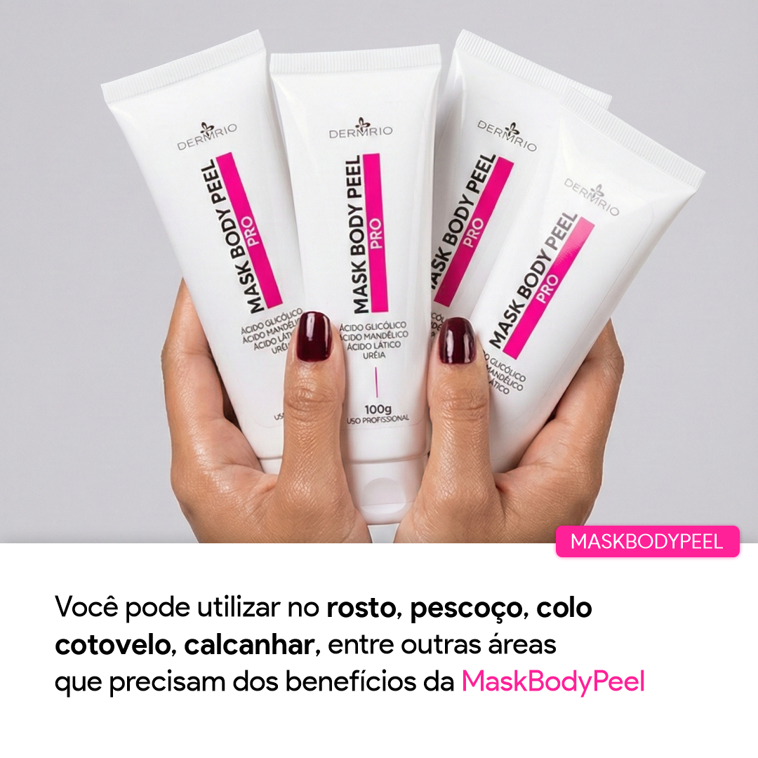 Embora formulado com a delicadeza necessária para uso facial, o MaskBodyPeel oferece versatilidade para tratar áreas corporais específicas que sofrem com aspereza ou envelhecimento precoce, como colo, braços e pés, restaurando a maciez e o viço natural.