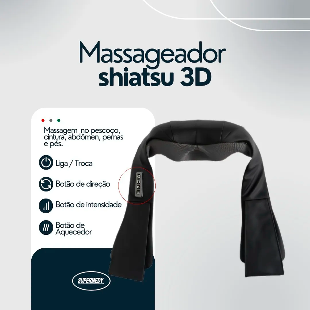 Invista no seu bem-estar com o Massageador Shiatsu 3D Supermedy e redescubra o prazer de um corpo relaxado e uma mente tranquila.