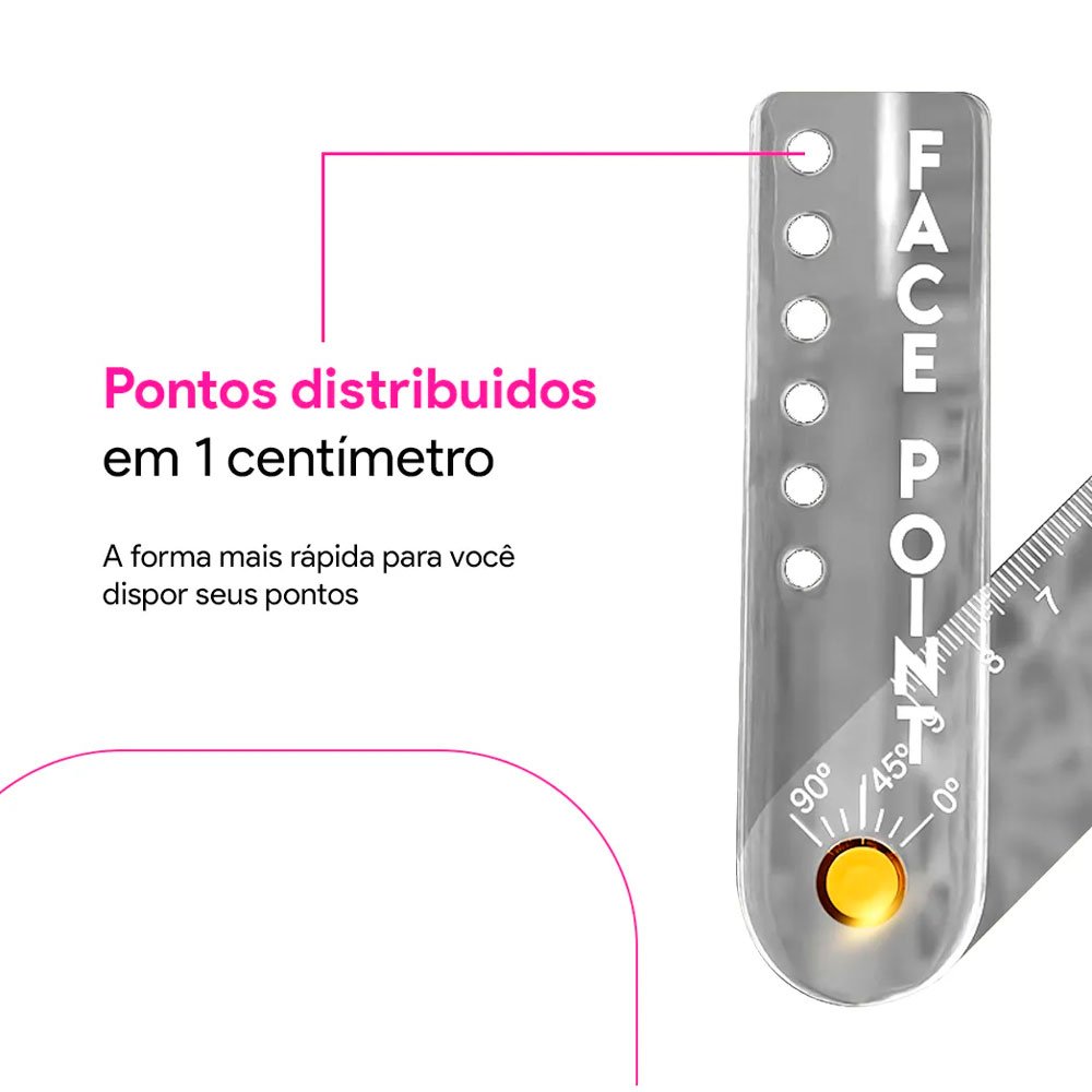 Régua facial Face POINT com medida 1-0-1, angulação de 90º e pontos de 1 cm. Garante simetria, precisão e agilidade nas marcações faciais. Essencial para profissionais de estética e harmonização.