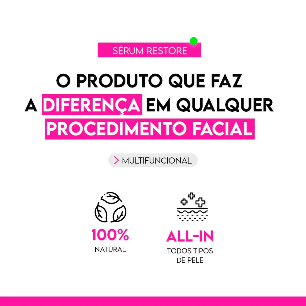 Seja para potencializar os resultados dos procedimentos ou como parte de uma rotina de autocuidado, o Sérum Restore entrega benefícios que vão além da hidratação, promovendo saúde e vitalidade à pele.